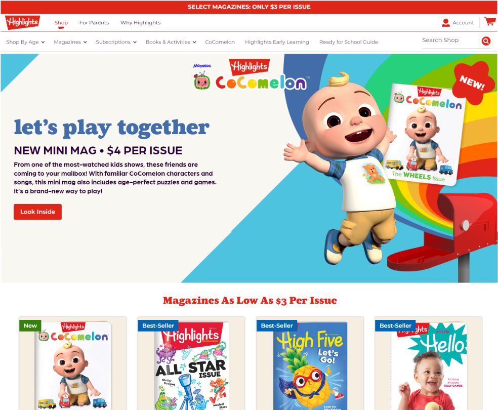 Highlights' goal is to inspire children to "be their best selves" using creativity and imagination to grow reading, thinking and reasoning skills. Known for their long-running magazines, Highlights also offers creative clubs, activity books, craft kits, and a line of shirts and back-to-school items with their signature style. Bamboo and Highlights teamed up to test new ways to lift conversion rate on Meta.