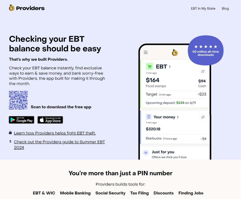 Providers is a free, #1 rated app that five million households now use to manage their EBT, WIC, SSI, unemployment, debit, and other benefits. Built with the intention of lessening the administrative burden that makes benefits hard to obtain, the Providers App aims to give back the time and emotional resources of those who need help. Bamboo and Providers teamed up with the goal of increasing brand trust and lowering cost per app registration.
