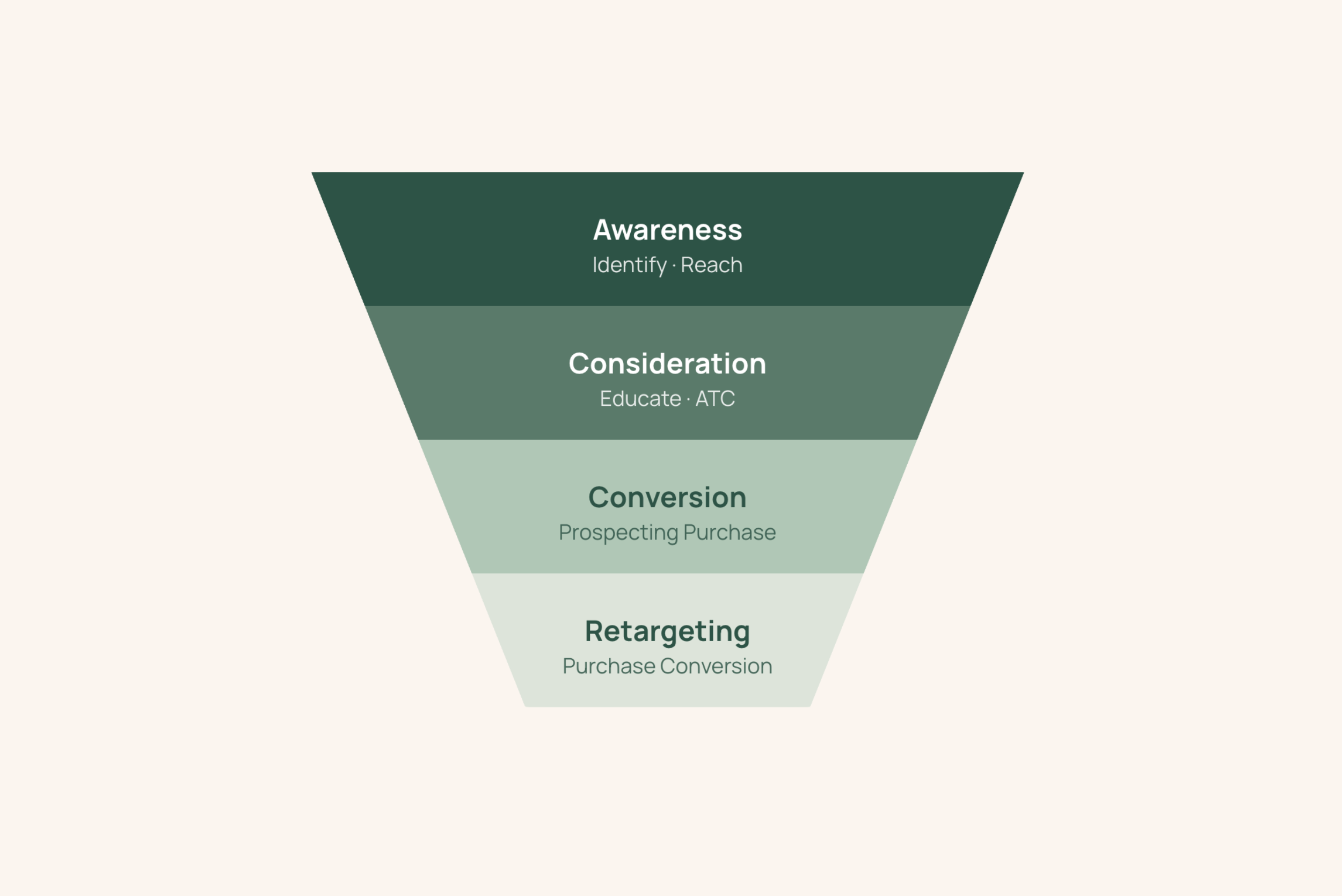Awareness: Broad targeting, brand value over product features. Test persona-specific hooks in the first 3-5 seconds. This is where the algorithm discovers which persona resonates with each user.