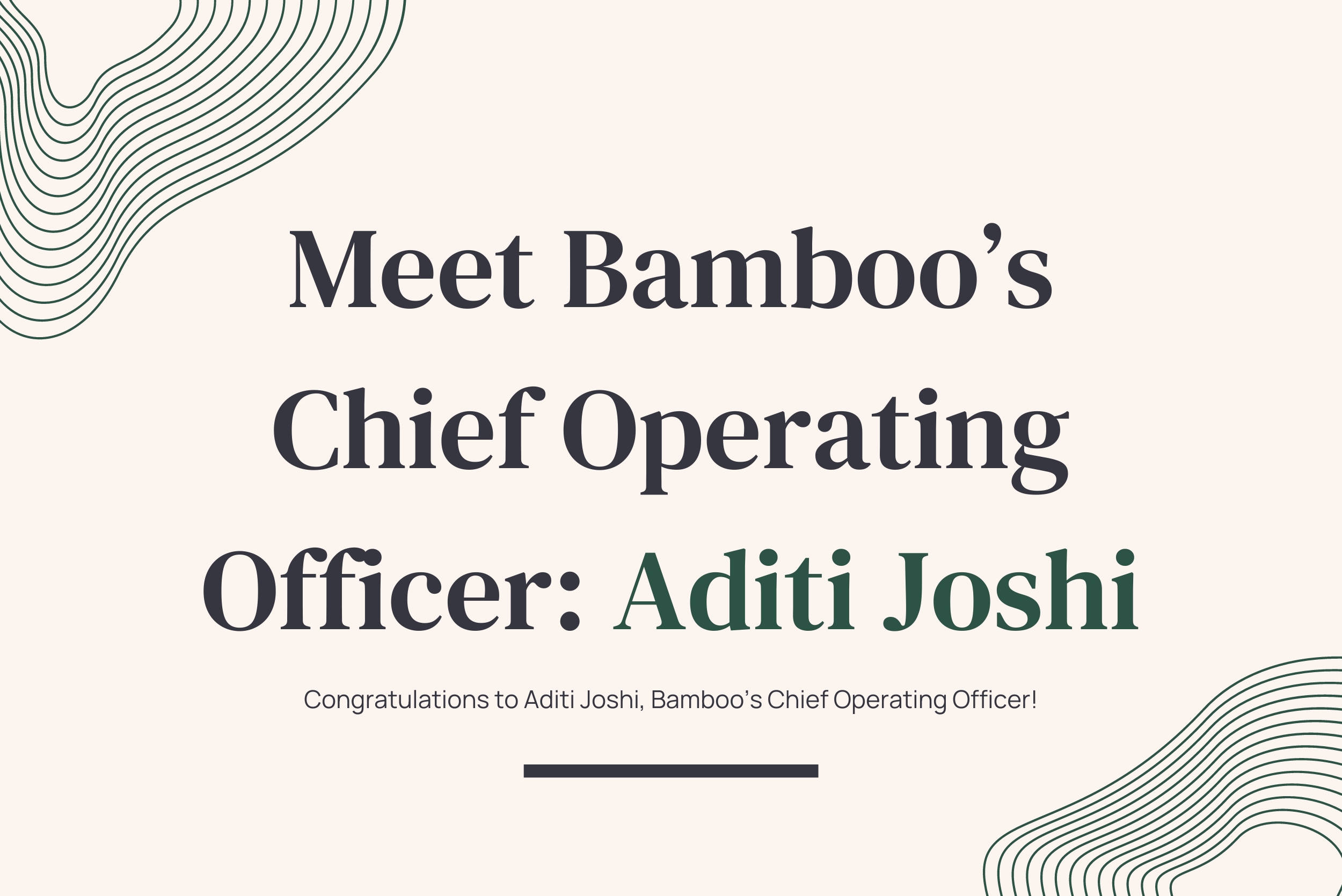 "Aditi has been my partner in managing Bamboo for a while now and I couldn't be more thrilled to have her formally step into this role," says Daniel Pearson, Bamboo’s Co-Founder and CEO. "She is a transformative leader who is low ego, highly adaptive, and passionate about what’s most important to me as well: our employees and our clients. Her vision, creativity, and commitment to results will continue driving Bamboo and our clients to new heights."